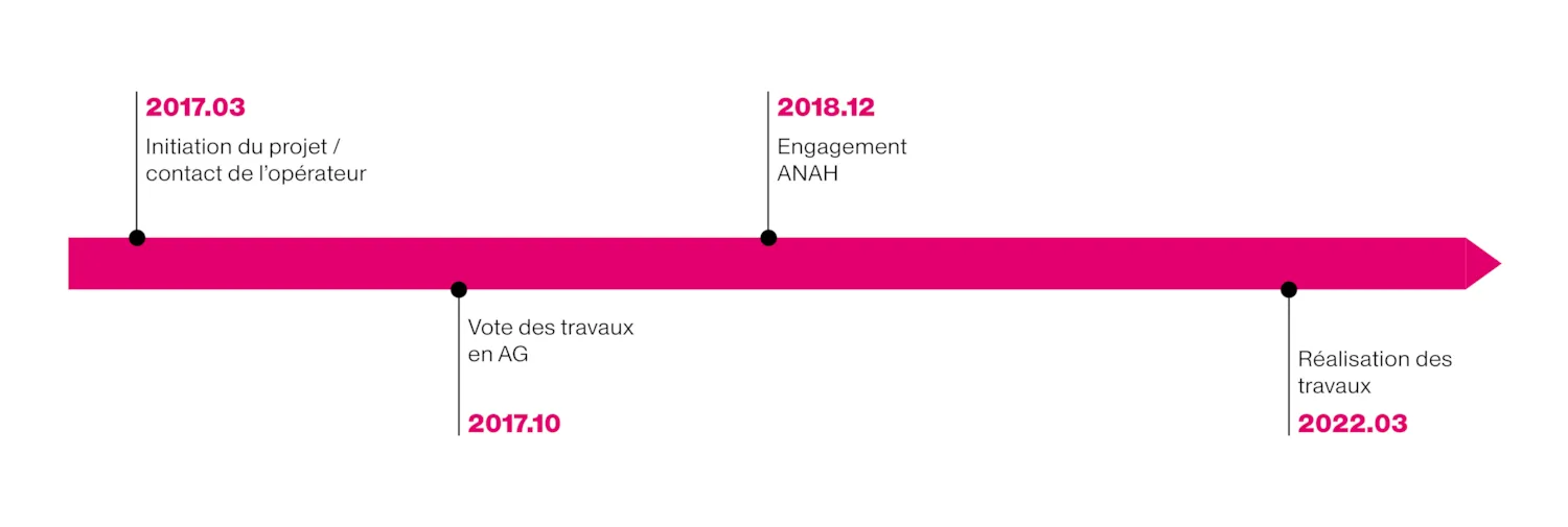 - Mise en place d’une VMC hygroréglable B A postériori des engagements de l’ANAH, la copropriété a souhaité ajouter à ce programme travaux le changement des tous les radiateurs en parties privatives.