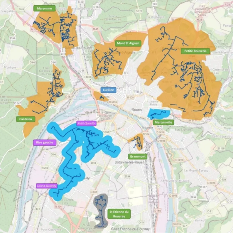Dans le cadre de la réglementation abordée précédemment, le conseil métropolitain a délibéré le 6 février 2023 pour définir les périmètres de développement prioritaire des réseaux de chaleur de Canteleu, Maromme, Mont-Saint-Aignan, Petit-Quevilly et Rouen Grammont.