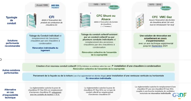 Explication des différents conduits et des différentes solutions © GRDF