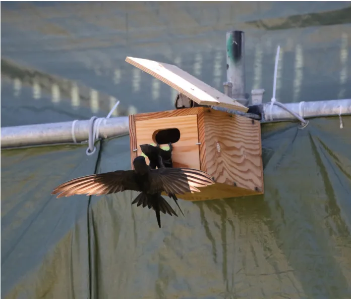 Nichoirs pour oiseaux : Fixez des nichoirs à martinets ou à hirondelles sur les façades ou sous les toitures.