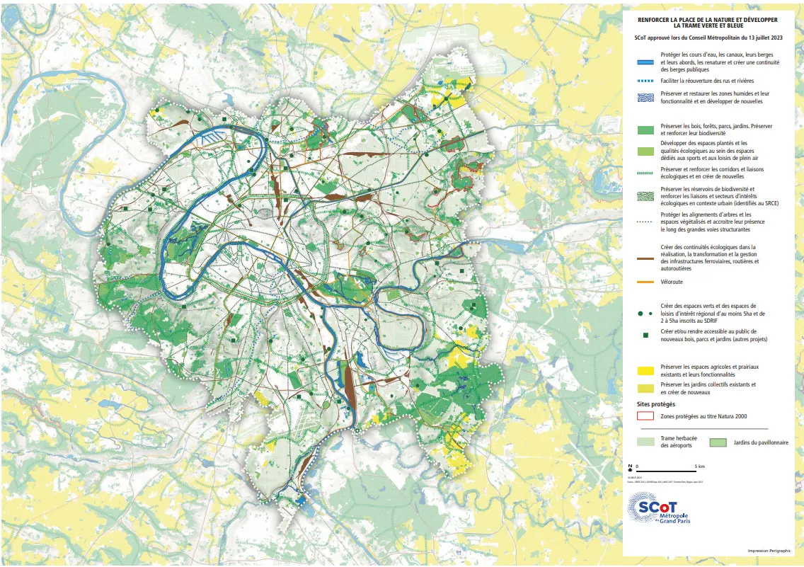 La Ville de Paris a développé un Schéma des trames verte et bleue, également connu sous le nom de "Chemins de la nature". Ce schéma identifie les réservoirs urbains de biodiversité et les corridors écologiques qui permettent la circulation des espèces animales et végétales dans la capitale.