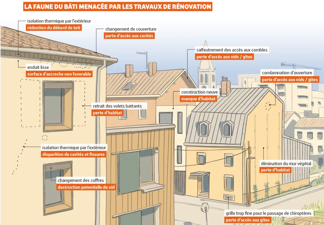 « Toute opération de rénovation ou de réhabilitation de bâtiment, quel que soit son objectif (énergétique, esthétique, sécuritaire, etc.), doit être pensée de manière à ne pas nuire aux espèces protégées présentes et à leurs habitats. »