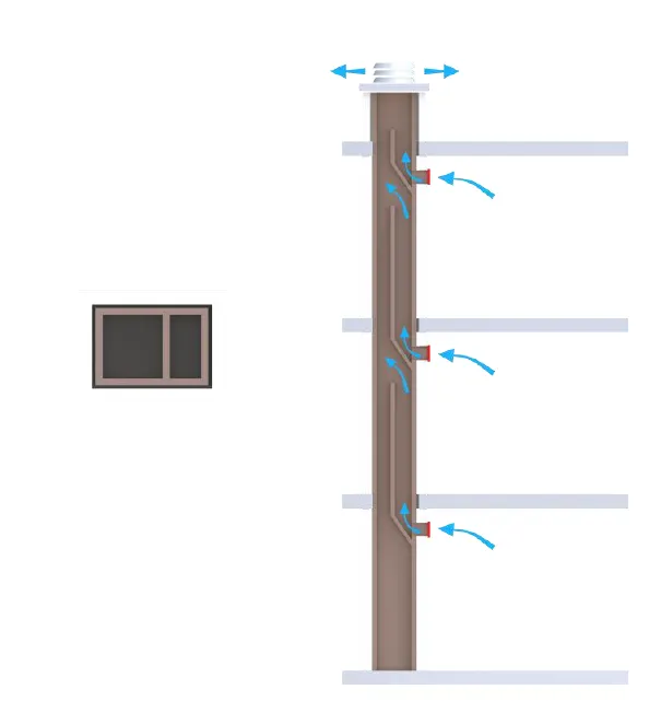 Le tirage thermique est un courant naturel au sein du conduit maçonné du bâtiment créé par la différence de température entre l’intérieur et l’extérieur et la hauteur du conduit maçonné de ventilation.