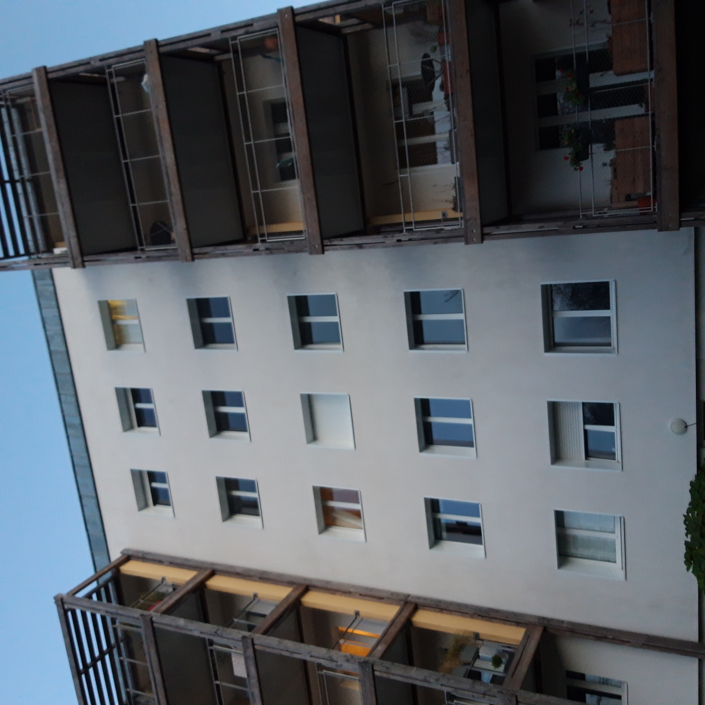 Les travaux BBC votés en 2018 étaient les suivants : ITE, isolation des combles, isolation du plancher bas, remplacement des menuiseries des parties communes et d'une partie des menuiseries privatives, remplacement d'une partie des volets roulants, ventilation hybride hygroréglable, rénovation de la chaufferie gaz et des réseaux hydrauliques. Outre la rénovation énergétique BBC des 2 bâtiments, des balcons ont été ajoutés.