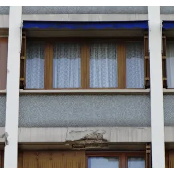 Le projet de rénovation énergétique s’est orienté vers une réécriture architecturale de l’édifice tout en préservant ses qualités intrinsèques. L’Isolation Thermique par l’Extérieur installée sur les nez de dalles ainsi que les poteaux en façade a cherché à éliminer les ponts thermiques, particulièrement importants dans cette typologie architecturale. Le projet a également été l’opportunité de modifier les colorimétries, dans des couleurs plus sobres avec néanmoins un rappel des teintes vertes des allèges existantes sur les poteaux porteurs. Une attention particulière a été apportée aux systèmes d’occultations, avec la pose de brises soleil motorisés à lames orientées, offrant une cohérence de lecture à la façade. La toiture a également été isolée er végétalisée. Les travaux se sont attardés à l’amélioration du confort d’hiver comme d’été des habitants.
