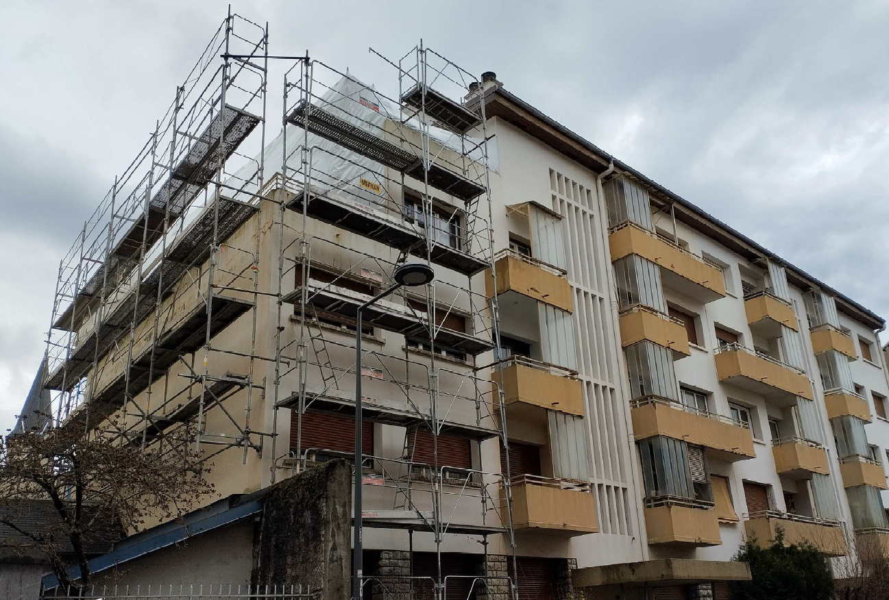 En 2014, la copropriété répond à l’exigence réglementaire en réalisant son audit énergétique avec le Bureau d’Etudes A3 Sereba. A 50 ans, la copropriété souffre en effet de pathologies telles que des fissures et autres altérations de la maçonnerie, notamment au niveau des balcons, créant des infiltrations dans certains logements. Des problèmes de moisissures naissent également dans certaines pièces, entre autres dus à un manque de ventilation. Les déperditions énergétiques sont réparties sur l’ensemble des parois et les copropriétaires ressentent de plus en plus d’inconfort dans les logements. La copropriété fait alors appel à l’Asder pour l’accompagner dans son projet de rénovation par l’équipe monPASS’RENOV et bénéficier des aides à la rénovation énergétique.