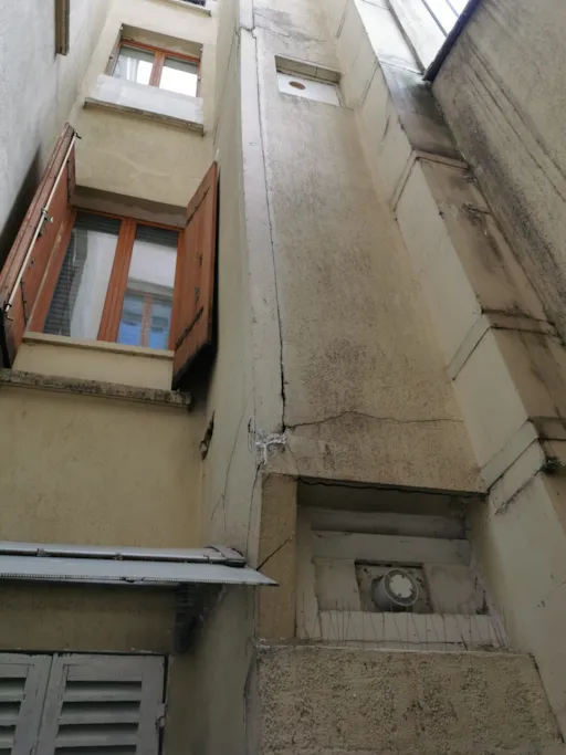 L'ensemble de la structure en pans de bois de la façade sur courette était à déposer et à remplacer. Des travaux de renforts structurels lourds ont été réalisés qui ont entraîné des semaines de décalages des travaux.