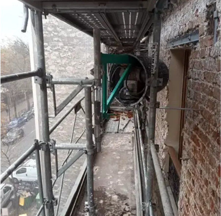 En raison de la découverte en décembre 2023 de la fragilité de l’édifice qui n'avait pas fait l'objet d'entretiens réguliers et dont la structure pouvait mettre en péril l’immeuble, le chantier a été stoppé le temps de trouver des solutions techniques faisables et pérenne.