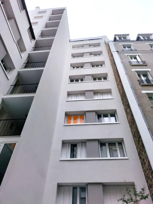 En 2019, deux des membres du conseil syndical de cet immeuble construit après guerre ont impulsé le projet de rénovation, en réponse à l’injonction de la ville de Paris de faire un ravalement. L’immeuble était très abimé : la toiture n’était plus étanche, le béton fissuré, la façade dégradée et les charges de chauffage bien trop élevées.