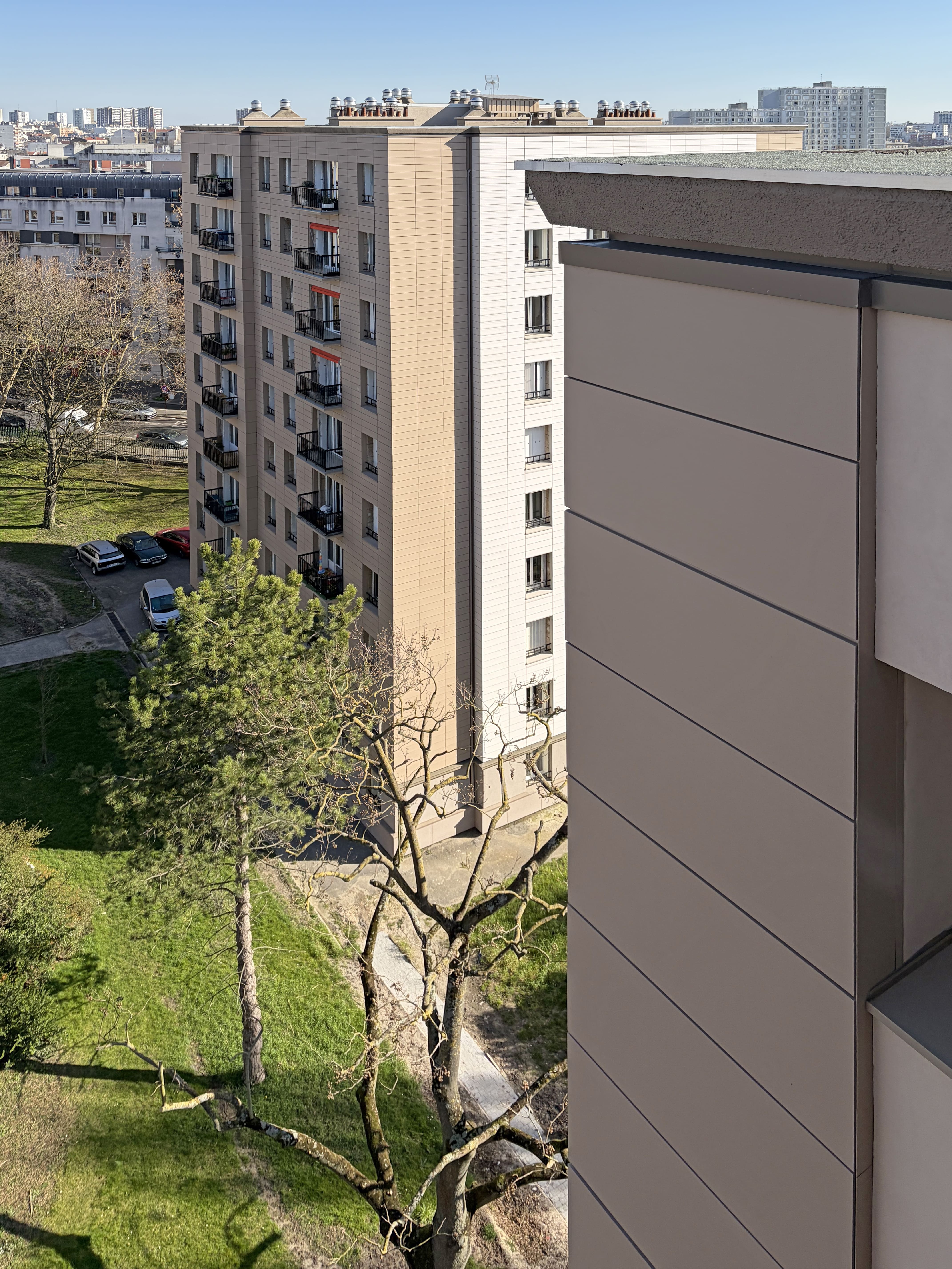 - Les façades : sur les revêtements en gravillon lavé, des chutes de gravillons à répétition nécessitait l'intervention régulière de cordistes pour des réparations ponctuelles et provisoires. Les reprises des gravillons étaient visibles. Des infiltrations étaient signalées régulièrement notamment au niveau des scellements des garde-corps et dans les niveaux hauts des tours. De nombreux logements présentaient des moisissures sur la face intérieure des murs de façade. Les bandeaux en béton, les appuis de fenêtres et les rives de plancher des balcons étaient très encrassées avec un développement de micro-organismes.