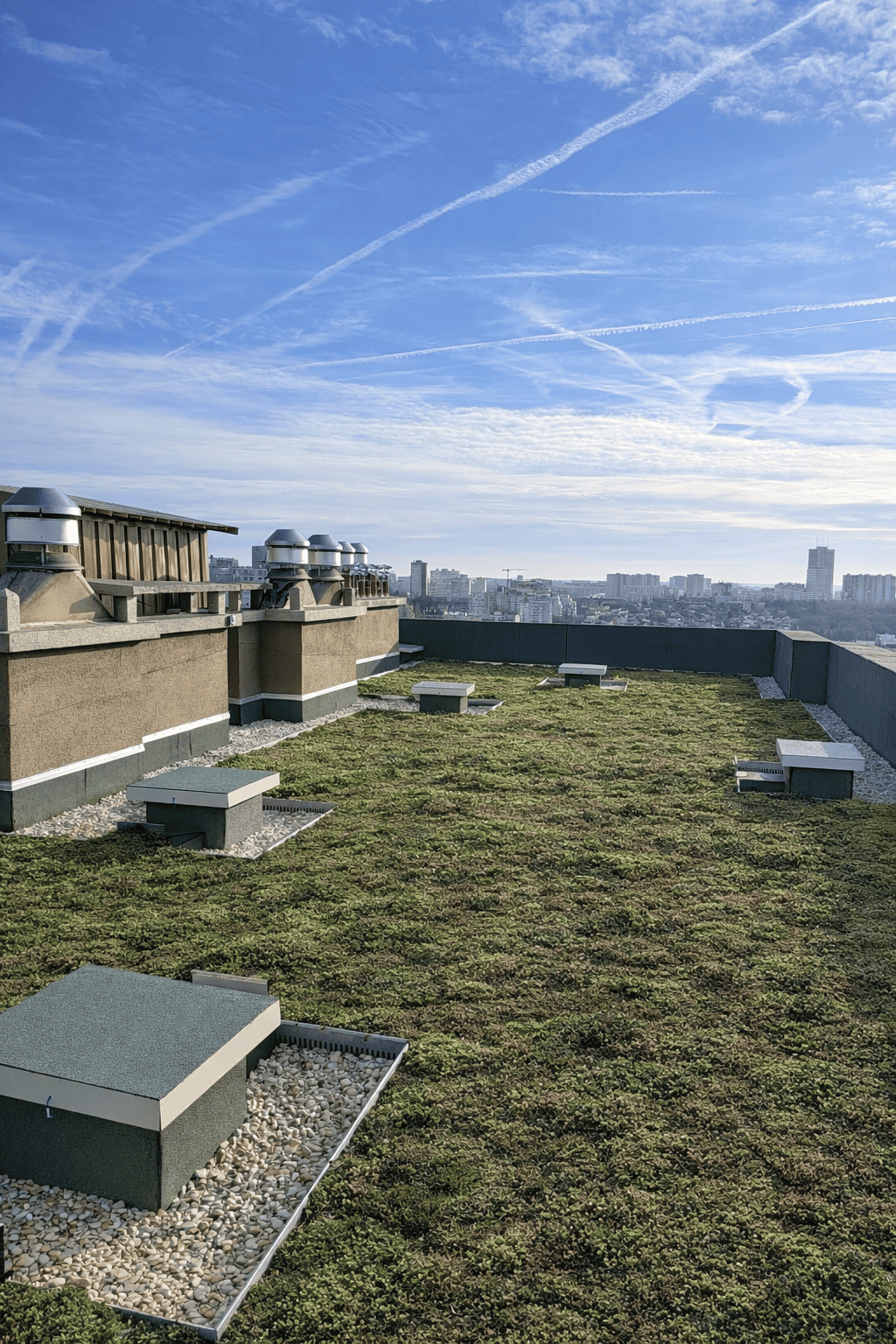 La végétalisation des toitures de la copropriété constitue un levier majeur d’amélioration de la qualité environnementale du projet. Elle contribue à la réduction des îlots de chaleur urbains, favorise la biodiversité en milieu urbain et améliore la gestion des eaux pluviales grâce à la rétention naturelle des précipitations.