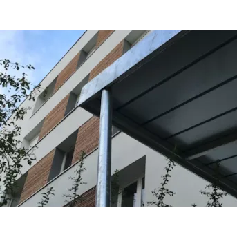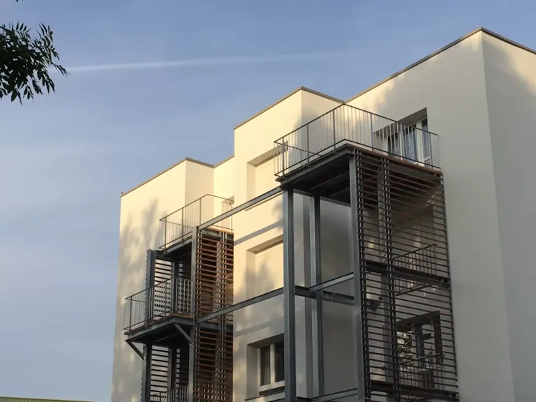 Au-delà de l'aspect thermique, l’un des objectifs de cette réhabilitation était de « casser » l'image d’une architecture de facture simple et économique. Une réflexion a été menée afin de redonner une identité à ce bâtiment, en offrant une image plus chaleureuse. L'approche a été de proposer des prolongements extérieurs aux logements, véritable plus-value aux logements. Ce pari, de prime abord, paraissait inabordable pour les copropriétaires. En effet, ces derniers venaient d’acquérir leurs logements dans le cadre la vente de patrimoine du bailleur SLH. Pouvoir s’offrir un balcon leur paraissait hors de portée. Nous avons proposé une structure collective permettant de recevoir chaque balcon privatif. Chaque résident a donc été libre de choisir de s’offrir (ou non) un balcon. Deux tailles de balcons différentes ont été proposée. Tout ce travail s’est en étroite collaboration avec les services l’UDAP et les services urbanisme.
