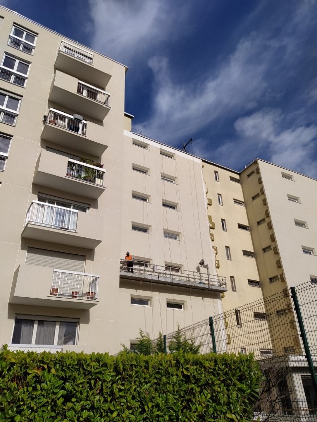 La réalisation de l’ITE a également nécessité le remplacement des réseaux de plomberie en façade ainsi que des garde-corps de balcons et de portes-fenêtres.