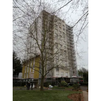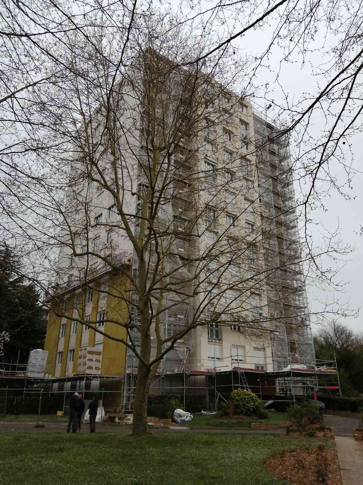 En 2018, le vote d’une mission de maîtrise d’oeuvre conduit à l’élaboration d’un programme de travaux permettant un gain énergétique moyen de 38%. Ce programme prévoit notamment la rénovation du système de ventilation d’origine et jugé obsolète (entrées d’air et bouches d’extraction en mauvais état, réseau aéraulique encrassé, humidité dans les logements, etc.) ainsi que des murs pignons et des façades faiblement isolés. Les planchers bas donnant sur des volumes réputés non chauffés induisent une surconsommation d’énergie dans les logements pour obtenir une température acceptable.
