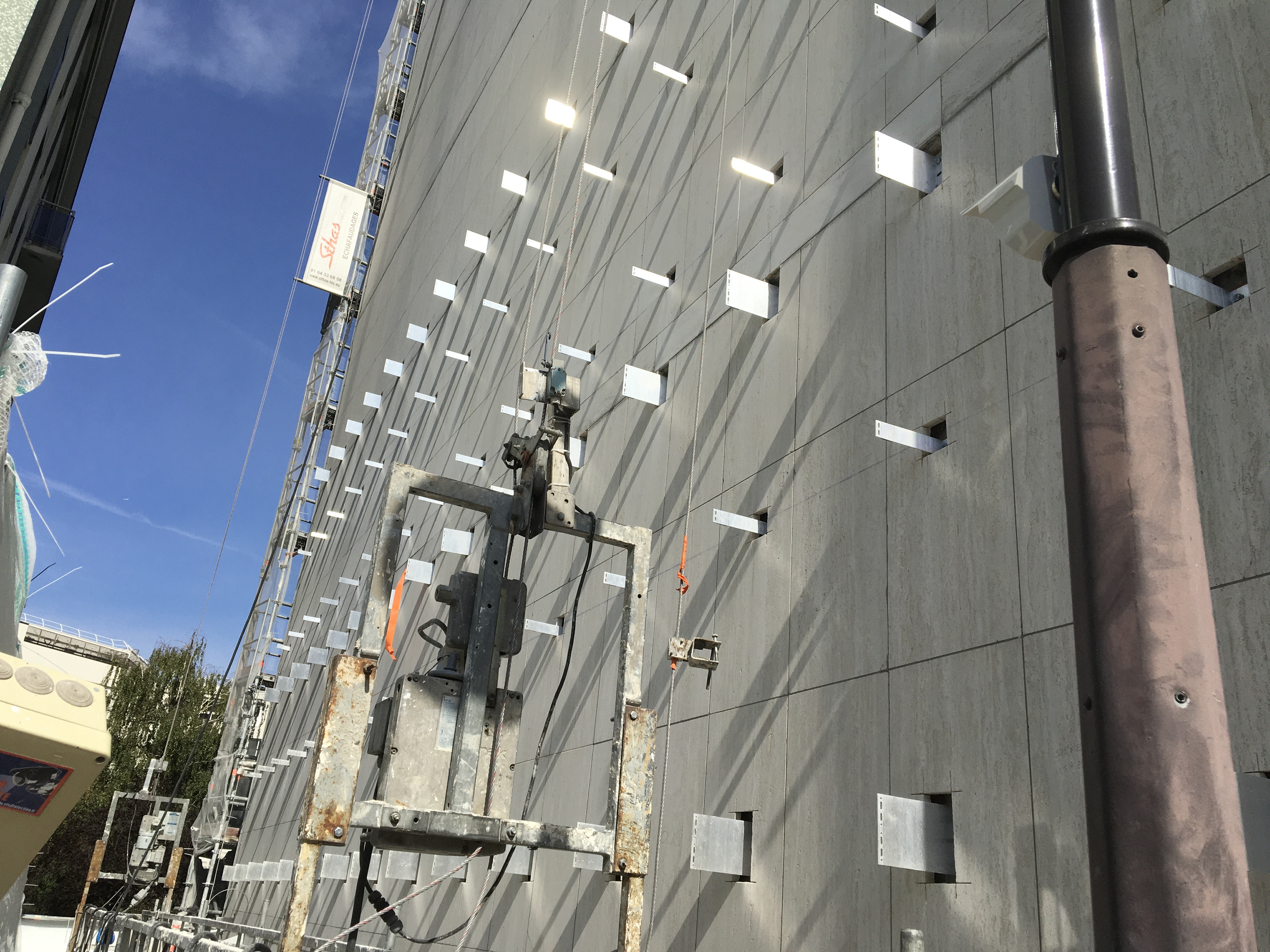 Cependant, ces façades, revêtues d'un parement en pâte de verre, présentaient des désordres importants en raison de chocs thermiques et des intempéries auxquelles elles étaient exposées, notamment aux derniers étages, et ont donc reçu un traitement d'imperméabilité.