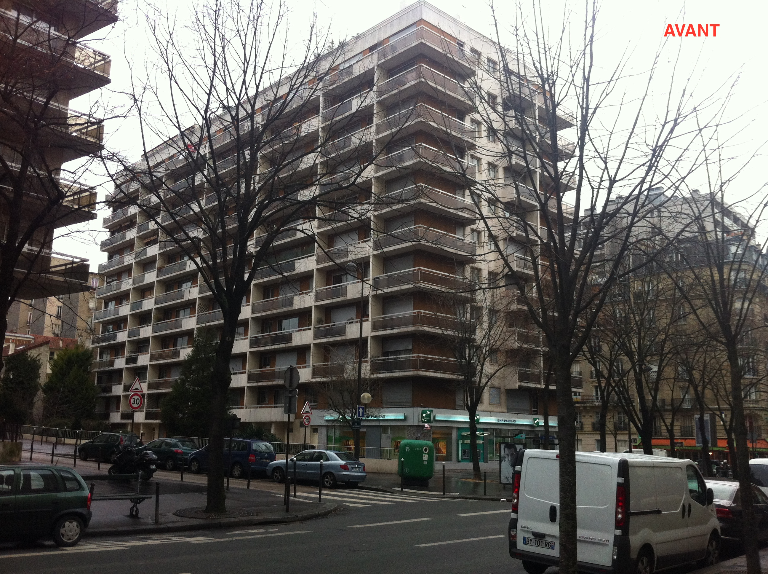 Correctement entretenu pendant 40 ans, l’immeuble accusait toutefois un vieillissement naturel de ses organes. La sous-station (CPCU) a été totalement rénovée en 2009, mais les enveloppes (façades, toitures et balcons) restaient à traiter. Tout comme les balcons et terrasses qui étaient très dégradés.