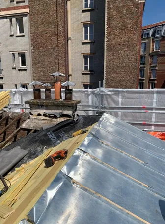 Remplacement couverture zinc – isolation combles 35 cm de ouate de cellulose (bio sourcé) par soufflage